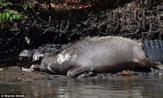 罕见!澳大利亚5米长咸水鳄吃掉3米长鳄鱼(组图)