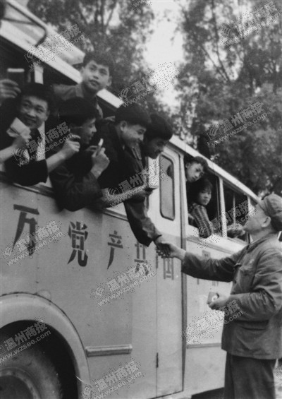 1970年6月5日,市领导在温州梅岙渡口与知青握手告别。
