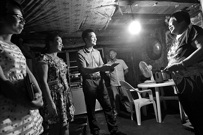 村民方生富的家中微微透出灯光,开门看见是镇委书记和几位村干部来访,让他颇有些惊讶,林天望向他解释:“今天主要是来听听你们对镇里工作还有什么意见和建议,好的不说了,就说不好的。”方生富在村里经营着一家农资店,他笑着说:“我这平常来买农资的村民多,可算是一个村民议论的窗口,这几年我听着大家对政府工作都还挺满意的,就是对建房子的政策有些不理解。”他说着指了指自己房子的墙壁:“你看我这房子建了10年了,现在家里人多不够住,顶层还有漏水,但是建新房的手续太繁琐。”林天望把方生富的意见写在笔记本上,对他说道:“建房的程序目前也没有太好的办法,而且要考虑到村内平衡的问题,现在就是想通过这样的走访,把村民的建房意愿先收集起来,以后再从镇级层面一起上报解决。”