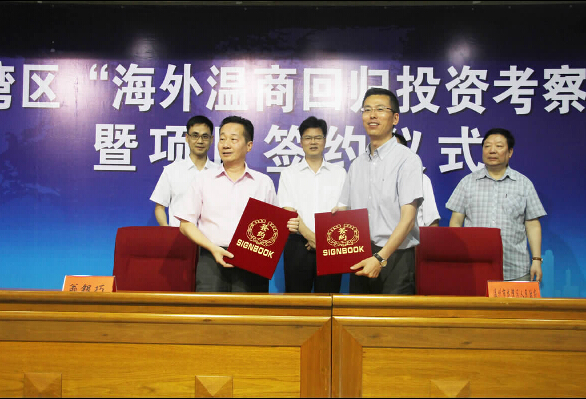 龙湾新闻网讯 昨天下午,2014龙湾区“海外温商回归投资考察”活动暨项目签约仪式举行,来自17个国家和地区的温籍侨商,深入考察我区招商引资项目,签约回归投资项目4个,协议总投资60多亿元,当天同时举行了中国银行温州分行授信侨资企业签约仪式,总额度达10个亿。(林栢露摄)