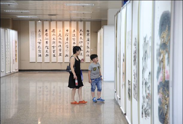 龙湾新闻网讯 7月26日,龙湾视觉艺术展在市文化馆举行,此次展览是温州市第二届市民文化节视觉艺术展的内容之一。150幅代表全区较高水平的书法、绘画、摄影作品亮相,展出时间截止8月4日。据介绍,今年我区有3件美术作品在浙江省第十三届美术作品展展出,其中两幅正在角逐全国美展。(叶晓东 林佰露 摄)