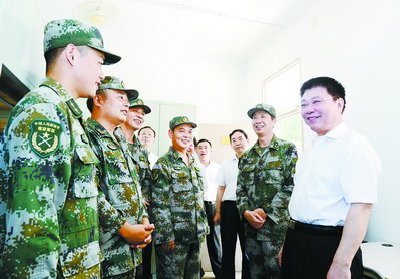 在中国人民解放军建军87周年即将到来之际,29日,带着全市人民的深情厚谊,省委常委、市委书记王蒙徽,市长刘可清,市人大常委会主任郑道溪,市政协主席陈修茂等市领导分路走访慰问驻厦部队基层单位官兵。