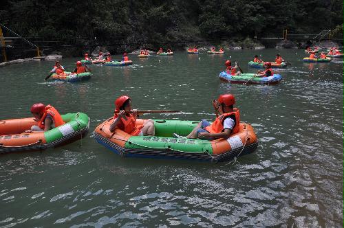 午饭后,稍事休整的团员青年来到漂流的起点,穿救生衣,戴安全帽,一切都显得紧张而充满期待,男女两两一组开始漂流,大家真真切切地感受了一把“浪尖飞舞过山车般的惊险刺激”。汗水挂在脸上,快乐充满内心,平日里分散在各个岗位的原本不甚熟悉的面孔早已变成荣辱与共的“生死战友”。(通讯员金军华)