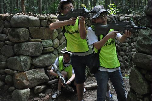 当日上午,大家抵达瑞安高楼山区无人村开展真人CS军事体验活动。20余单身青年分成两队,每队队长由推选产生,每位男同志搭档一位女同志,两队随即开始对决。每队队长肩负着排兵布阵的指挥任务,“战士们”两三人一组冒着守方密集的火力,有包抄、有埋伏、有匍匐、有掩护……这是一项只有整体协同配合才能完成的任务,每个人都充满了集体荣誉感和团队意识。