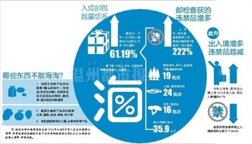 昨天,温州出入境检验检疫局首次针对邮检和旅检情况召开新闻发布会,表示近来在邮寄物中查获的禁止入境物数量在不断增加。他们建议消费者在选择海外网购(又称“海淘”)时,先了解清楚所买的商品是否能邮寄到国内,要把违禁物品拉黑(拉进黑名单)。