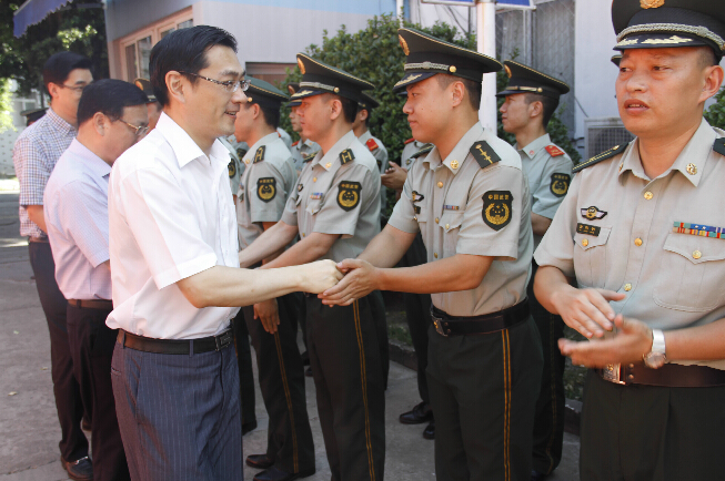 八一建军节来临之际,王军、陈应许、周赞、徐国信等区四套班子领导带着慰问金和慰问品前往龙湾国际机场边检站、温州市委警卫局、武警温州支队直属大队、温州市军分区、区边防大队、区人武部以及区消防分局等地看望慰问驻地部队和武警官兵,向他们致以节日的问候和祝福。