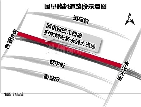 因温州市域铁路S1线SG11A标段一期工程施工需要,从今天开始至2015年11月30日,龙湾区围垦路(罗东南街至永强大道段)禁止一切车辆通行。施工封闭路段将预留行人通道,车辆请绕行镇标路、城中街、衙城街等平行围垦路的支路。