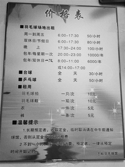 温州羽毛球馆潜规则:晚上打2小时球收3小时的费