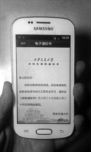 “为能第一时间收到电子录取通知书,爸爸还特地给我买了新手机。”黄以勒说。
