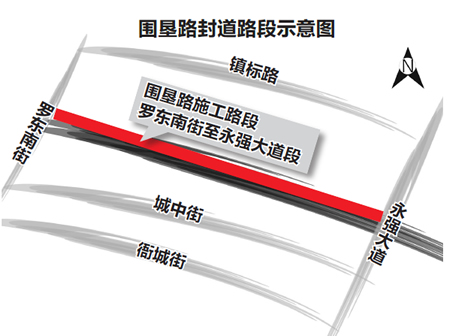 路况:因温州市域铁路S1线SG11A标段一期工程施工需要,从2014年8月5日开始至2015年11月30日,龙湾区围垦路(罗东南街至永强大道段)禁止一切车辆通行。施工封闭路段将预留行人通道,车辆请绕行镇标路、城中街、衙城街等平行围垦路的支路。