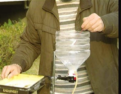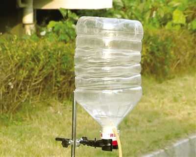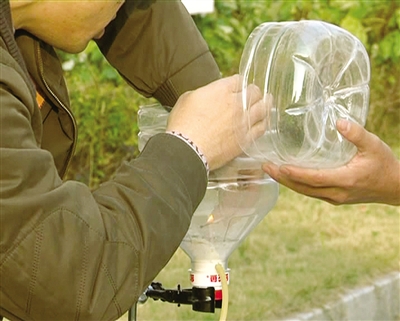 实验步骤基本一致:一个塑料瓶被切断为大小两部分,小的作盖子,大的里面放置了酒精球,底部通过胶管与空气助推器相连。实验人员随后分别往里面添加3小匙左右的粉末。用火柴点燃酒精球,盖上盖子使之密封,再用空气助推器往里面吹入少许空气,让粉尘在瓶内扬起。