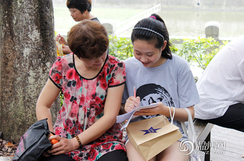 热心市民认真填写问卷,并讲述自己身边的诚信故事。