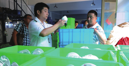 8月7日上午,记者卧底第三天,根据暗访到的情况,另一组记者称有市民匿名举报,向龙湾区卫生监督所做了反映。该所立即安排执法人员与记者前往“康洁”查处。然而,让人意想不到的“怪事”发生了,“康洁”似乎已得知有人来检查。在执法人员未出发前,该厂突然停工,工人开始打扫卫生。执法人员到场时,老板带领管理人员在厂门口“欢迎”执法人员的到来。
