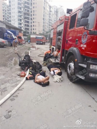 直到昨日上午9时许,厂内堆垛中的白烟才慢慢消散。而这时,体力透支的消防官兵已瘫倒在消防车旁,所幸没有造成人员伤亡。网友“摄魔色魔”看到这一幕后,拍下了几张照片,上传微博后,引来了网友们的“点赞”,不少人纷纷表示消防战士非常辛苦,向这群烈火英雄致敬。