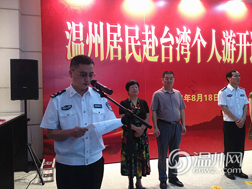 在当天上午的开通仪式上,省公安厅出入境管理局政委孟涛宣读了公安部《关于开放第四批大陆居民赴台湾个人旅游试点城市的通知》文件。随后,温州市委常委、市公安局长黄宝坤宣布温州开通赴台湾个人旅游证件签发工作。这标志着温州市民期盼多年台湾自由行终于正式可以成行了。