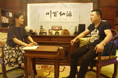 图为采访团成员在采访昆明龙湾商会会长王会海