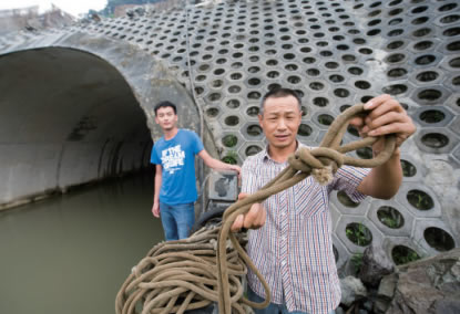 而身在岸边的项江明却已看到危险,“我当时看到他好像被水流往水闸方向带,那水闸后面就是涵洞了,我连忙叫他快上来。”但项江明的呼救已来不及,越接近水闸,泄洪水流吸力越大,杨天贵和项江红很快就被卷进了水闸,冲进了涵洞。