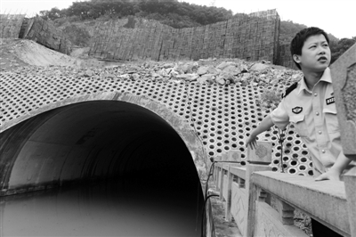 当时我赶到现场时,水闸已经放下,但洞内的水流还是有些大,因为我水性不大好,所以就抱了两个游泳圈跳下去。