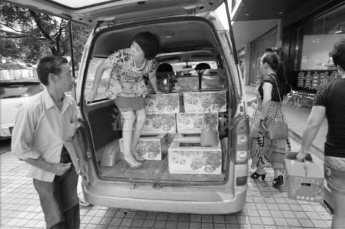 昨天下午5时30分许,一辆满载红提的小型面包车在诚信商厦前停下。62岁的章正东有些艰难地从副驾驶座上下来。这时,一边的好心人拥上前去,将老人搀扶到一旁坐下。
