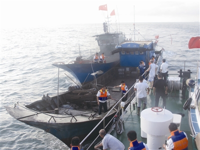 作为海洋与渔业执法的急先锋,市海洋与渔业执法支队借势狠抓落实,做好了打一场“三无”渔船取缔硬战的充分准备,一旦得到非法渔船的信息就随即出击执法。这是今年伏休以来出海执法的几个片断: