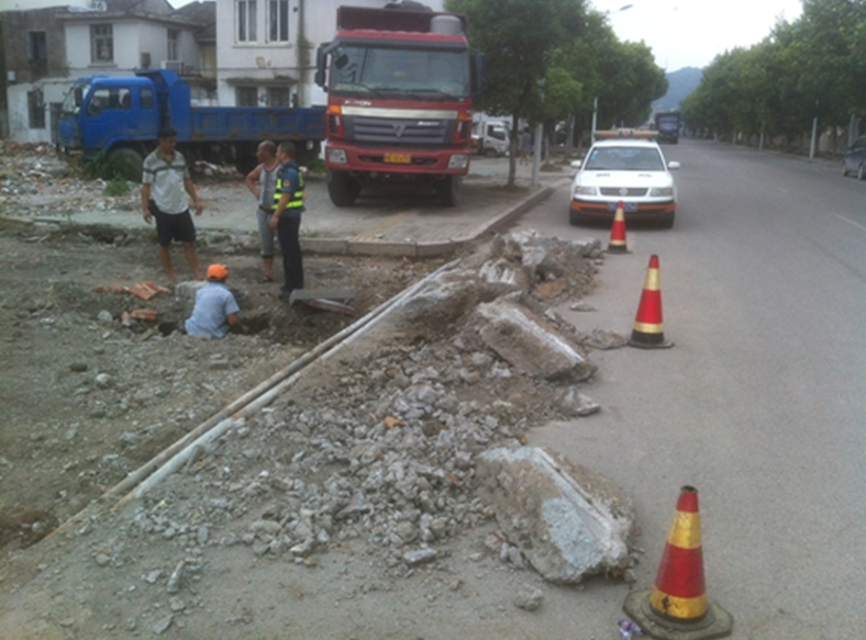 龙湾新闻网讯 8月25日下午,龙湾路政执法人员在辖区茅永线开展日常路政巡查工作时发现,该线底岭下路段有人在擅自开设交叉道口,立即责令其停止施工。