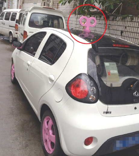 瑞安现最萌汽车:车顶上了粉色“发条”
