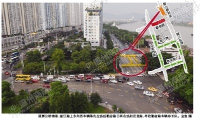 记者昨来到郭公桥看到,该桥两端已被黄色的警示标志牌围住,禁止车辆通行,行人和助动车可以从两侧人行道通行。上午8时与下午6时早晚高峰期,记者观察发现,望江东路东往西方向,出现排队等候现象。
