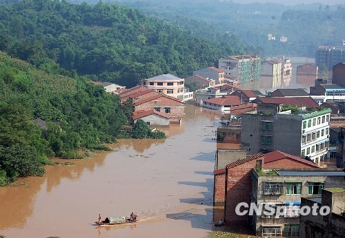 7月20日,四川省岳池县罗渡镇,被洪水淹没大半。自7月17日以来,岳池县遭受百年一遇的特大洪涝灾害,全县44个乡镇23.68万人受灾,造成经济损失逾21亿元。