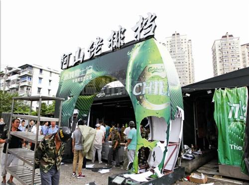 昨天下午4时许,鹿城区滨江街道办事处联合辖区市场监管、城管、公安等部门对该排档依法取缔。执法人员未到前,记者在排档门口看到,排档的工作人员正在搬离一些餐饮用具。随后执法人员拆除了排档招牌,暂扣的桌椅和烹饪用具装满了两辆载重5吨的货车。