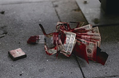 在电影的第15分钟左右,一位银行工作人向新进员工介绍了夹带有染料包的钱,并说银行每一个存放钱的抽屉都会放一个,劫匪若想把它从银行带走,染料包就会被引爆。