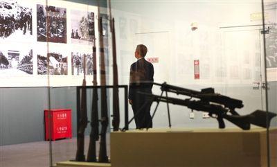 昨日,中国国家博物馆,参观者在观看抗战历史照片。国博馆举办的《正义的胜利——纪念第二次世界大战75周年》展今天正式开展,展览展出二战160件珍贵文物和230多张历史照片,展览截至9月28日。记者浦峰黄颖摄