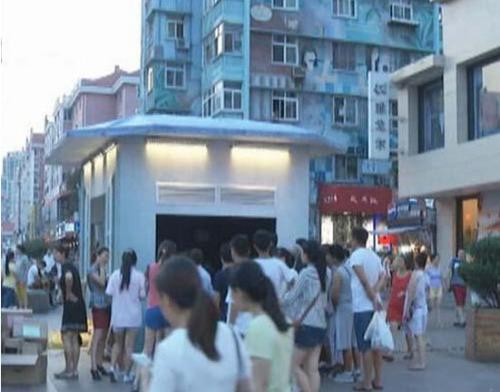 最近几天,在青岛台东步行街,每天都有一些逛街市民,驻足观看裸着上半身洗澡的女士。这是咋回事