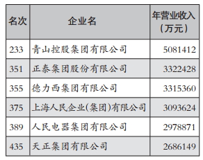 2014中国企业500强榜单9月2日发布,以青山控股集团为首的6家温籍企业上榜。2014年,这6家企业创造的营业收入超过2000亿元。