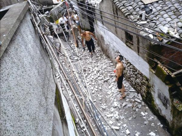 外墙坍塌,民房敞开一个大口子。记者 吴祖坚/摄