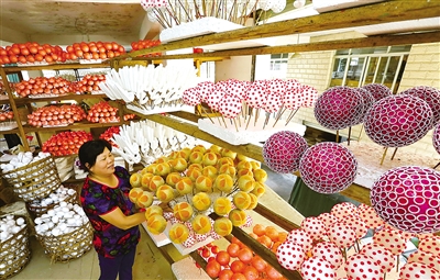 瑞安市湖岭镇溪坦村有大山里的“圣诞村”之称,现在家家户户做圣诞礼品,有金粉彩球、松果、铁铃铛、圣诞珠串、蝴蝶结等上千个品种。每年的5月至8月份是圣诞礼品生产最繁忙和发货出口欧美等国家的高峰期。今年5月至8月份仅圣诞礼品出口预计达到3.5亿元。庄颖昶摄