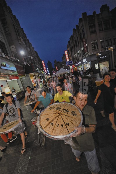 6个大月饼总重约180斤 两百温州市民共同分享