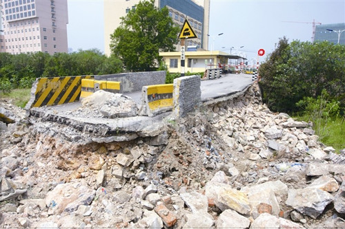 今年7月21日,惠民路铁道口南侧的小路一段路基曾发生塌方,导致四五米长的路面架空。为保证过往车辆安全,交警部门对该路段采取封道措施。交警部门介绍,尽管设置了路障,但仍有一些骑自行车或者摩托车的市民冒险闯禁,重新设置围墙后,有人甚至把围墙上的铁门破坏。