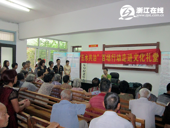 刘彭在永嘉县东皋文化礼堂宣讲五水共治