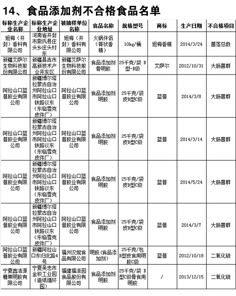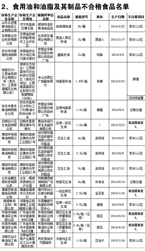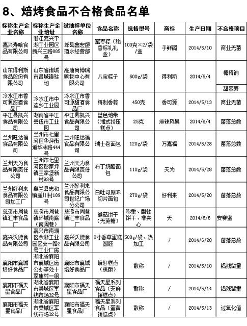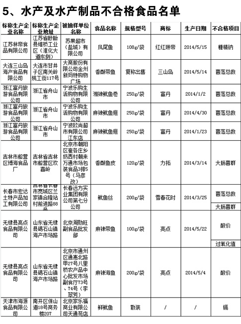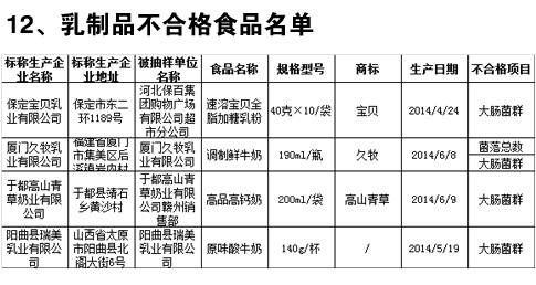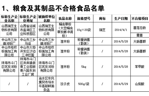 国家食品药品监督管理总局官网5日公布了2014年第一阶段20类食品及食品添加剂的监督抽检信息,曝光189批次不合格样品,涉及粮食及其制品、乳制品等14类产品。
