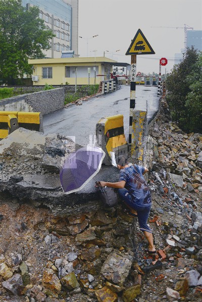 不久,一名老伯径直从北侧围墙边缘空隙处进入。协警发现后,忙吹哨挥手示意其离开,但老伯不理会,大摇大摆地来到了协警所在的轨道旁。协警虽多方劝阻,并强调施工现场的危险性,但是老伯仍旧跨越栏杆,小心翼翼地进入沟底,手脚并用爬到了对面路面上。协警介绍说,今天他刚当班半小时,已经有七八人闯进来了,其中甚至有推着自行车进来的。这名老伯已经是第二个不顾拦阻闯禁的。