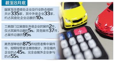吹风会上,国家发改委、商务部和工商总局发布了我国反垄断执法清单。截至8月底,国家发展和改革委员会查处企业及行业协会组织共计335家,其中外资企业33家,约占其查处企业总数的10%。