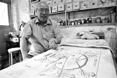 孔令雄老人根据自己的记忆构思出了一幅幅画作。晓春摄