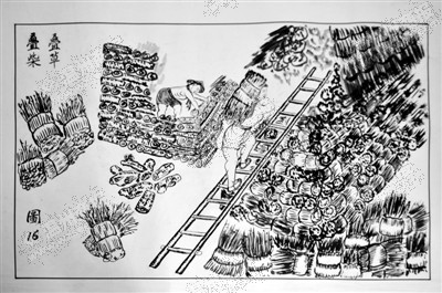 煅烧矿石所需的燃料大多为柴草,矿工采集了大量柴草之后需要堆叠贮藏。