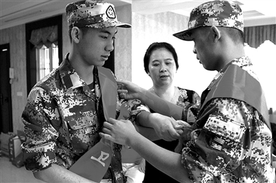 哥哥胡力仁为能通过应征体检,下决心节食锻炼减肥。其母亲郑春华告诉我们说:“力仁体重当时是75公斤多,他担心自己超重,为了参军他10天减了十几斤。”从小就立志参军的兄弟俩,得到了父母的大力支持。如今,他俩通过了体检、政治考核,共同被分配到海军某部队。