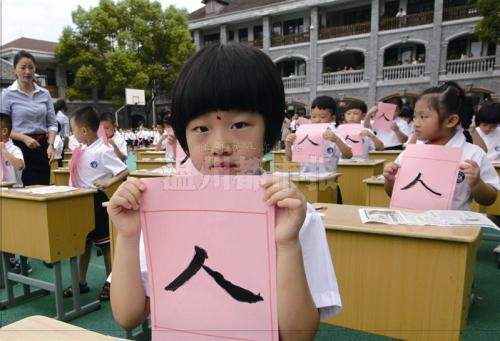 墨池小学一年级新生参加开蒙礼 拜恩师学写“人”