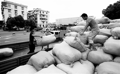 一包包精心装好的衣服被装上大卡车。刘伟庄严摄