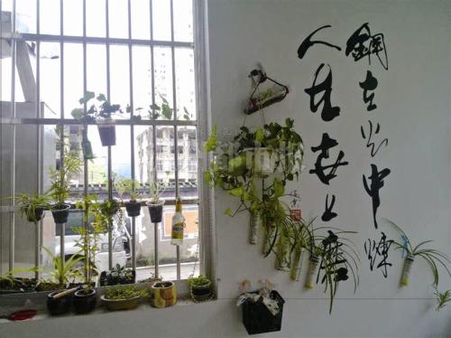 小张的工作室墙上、窗台上,摆挂着不少她DIY的盆栽。