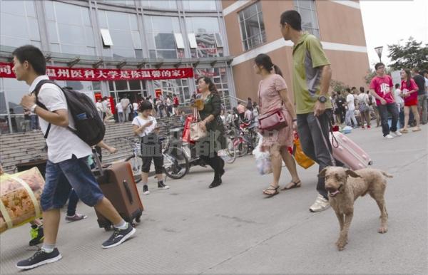 温医大新生昨正式报到 有新生全家出动 狗狗也来了