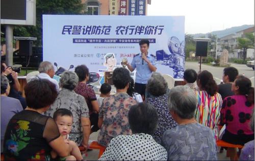 9月15日下午,由省公安厅联合农行浙江省分行、浙江法制报社开展的“‘民警说防范•农行伴你行’百场公安微电影下基层”活动温州站启动仪式在龙湾区瑶溪街道南洋社区警务室前举行。
