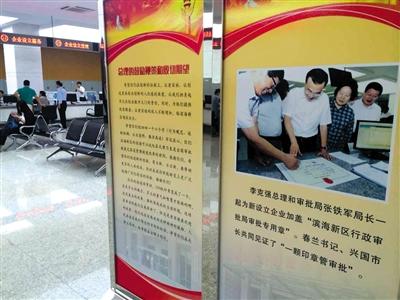 昨日,天津滨海新区行政审批办事大厅,李克强总理前来视察的照片摆在大厅。